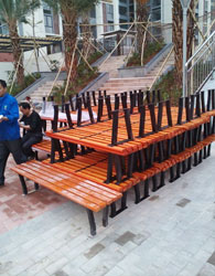 深圳實業公司購買無靠背休閑椅 麒麟山莊采購欣方圳塑木休閑椅 惠州龍溪房地產享受生活更愛休閑椅