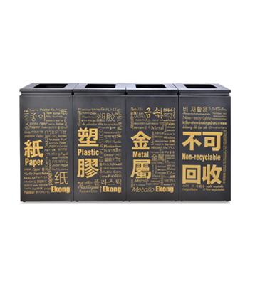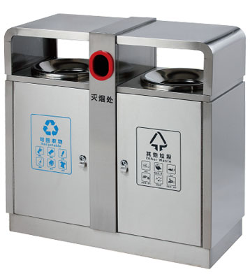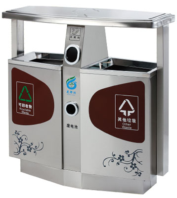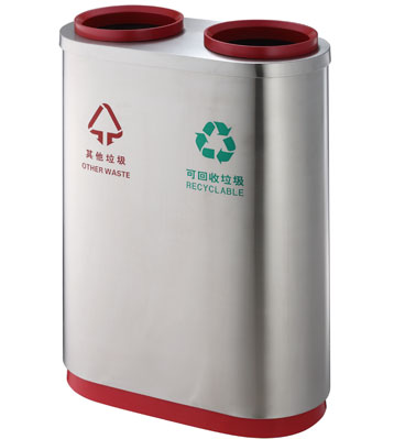 深圳新標準城中村街道社區不銹鋼五分類垃圾桶由有害垃圾、玻璃、金塑紙(為金屬、塑料、紙張的簡稱)、廚余垃圾、其他垃圾這5分類不銹鋼垃圾桶組合而成。其中金塑紙、其他垃圾日常產生量較大,所以分類收集容器也