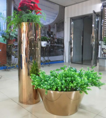 不銹鋼花盆是用于私家花園別墅中配套使用的盆狀容器,并廣泛應用于園林綠化和景觀工程當中,如今在城市街道綠化中是廣泛應用,城市街道的不銹鋼花盆是美化環境的。廣東汕頭市的一個酒店客戶,近日就在網上