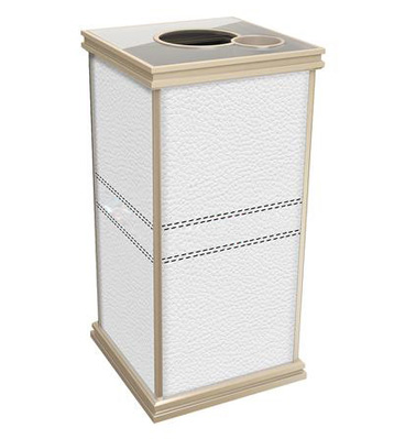 欣方圳為深圳嶺南天潤物業公司提供了一批室內垃圾桶,材質有鈦金類和鐵板噴塑類,外觀精美,使用價值高。 D272皇家座地煙灰桶規格:300*300*685,D295垃圾桶的規格為310*310*740,采用不銹鋼經鍍鈦處理,專業除