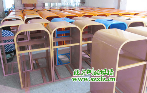 4.裝飾處理:目的:使經過靜電噴涂后的工件達到某一種特殊的外觀效果如:各種木紋、花紋、增光等。工藝步驟:罩光;轉印等 處理工藝噴塑。有點1.靜電噴塑工藝與傳統的噴漆工藝比較具有的顯著優勢,不需稀料,施工對環境無污染,對人體無毒害;2.涂層外觀質量優異,附著力及機械強度強;3.噴涂施工固化時間短;4.涂層耐腐耐磨能力高出很多;不需要底漆;生產的各型號垃圾桶,除不銹鋼垃圾桶外,均采用噴塑工藝進行防銹處理。同時,也讓垃圾桶更加美觀,表面光潔,易于清理,不拍曬,不拍雨淋,等特殊,產品質量更有保障。