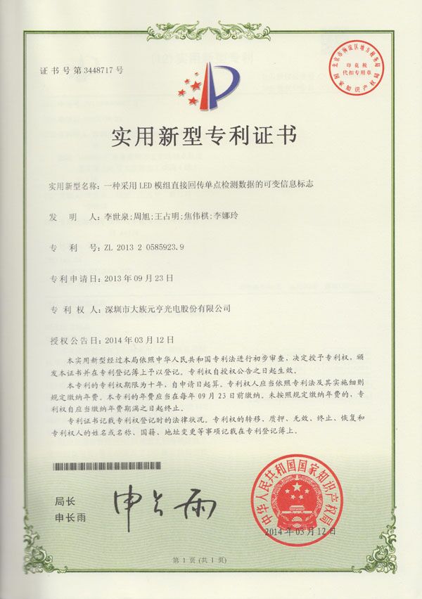 : 高速公路和城市LED可變信息標(biāo)志整體結(jié)構(gòu)-證書(shū)