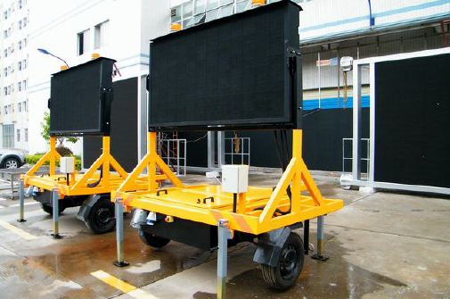 單立柱式LED可變信息標(biāo)志用于提示司機(jī)某易發(fā)危險(xiǎn)路段注意事項(xiàng),