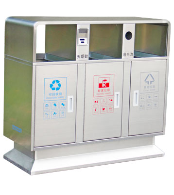 小區垃圾分類站點四類垃圾分類垃圾桶,不銹鋼無疑是較為理想的材質。它戶外防銹蝕效果好,表面金屬光澤高檔美觀,污漬也易清理。不銹鋼分類桶產品款式造型易定制,不受尺寸大小限制,滿足個性化需求,擺放于惠