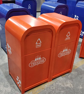 湖北黃石兒童公園鋼制烤漆分類垃圾桶美觀耐用