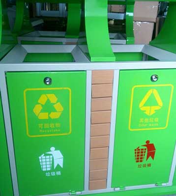 F139戶外鋼板四分類垃圾桶