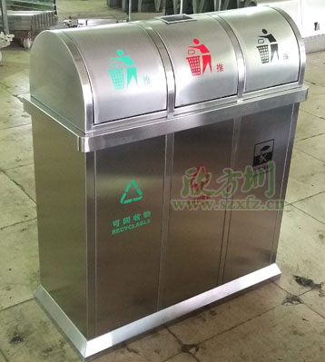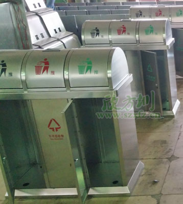 不銹鋼垃圾桶是一種存放垃圾的容器,使用不銹鋼制作而成。因為不銹鋼耐空氣、蒸汽、水等弱腐蝕介質和酸、堿、鹽等化學浸蝕性介質腐蝕,所以不銹鋼垃圾桶耐用性高。全身不銹鋼制作的垃圾桶還具有防火功能,堅固耐用。 材質:不銹鋼常按組織狀態分為:馬氏體鋼、鐵素體鋼、奧氏體鋼、奧氏體-鐵素體(雙相)不銹鋼及沉淀硬化不銹鋼等。另外,可按成分分為:鉻不銹鋼、鉻鎳不銹鋼和鉻錳氮不銹鋼等。