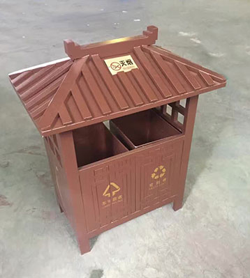 欣方圳景區古典鋼制分類垃圾桶戶外擺放圖