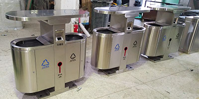 欣方圳小區不銹鋼分類垃圾桶工廠生產圖