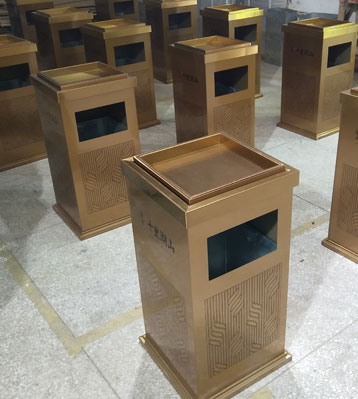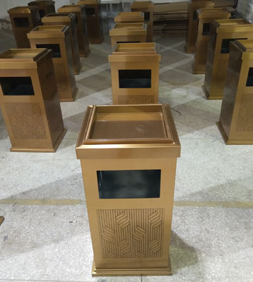 E242垃圾桶電鍍玫瑰金工廠批量生產圖
