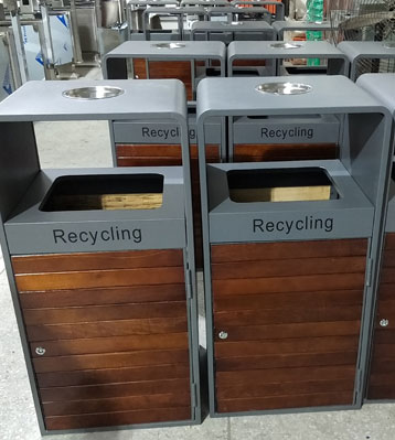 欣方圳戶外鋼木分類果皮箱批量生產圖