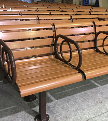 欣方圳戶外鋼制烤漆塑木帶扶手靠背園林椅椅條