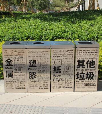 欣方圳多國文字組合式不銹鋼分類垃圾桶工廠生產(chǎn)圖