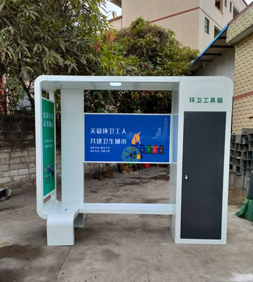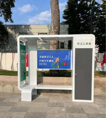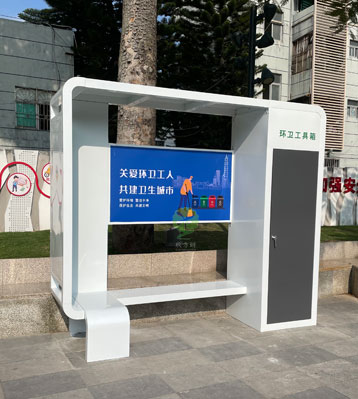 深圳大浪街道這款環(huán)衛(wèi)工人休息歇腳亭,由大浪街道黨工委決定由街道市政中心牽頭設(shè)計(jì),集環(huán)衛(wèi)工具箱和休息座椅實(shí)用性功能于一體,欣方圳工廠生產(chǎn)...