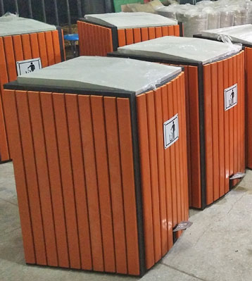 戶外腳踏式鋼木單桶垃圾桶工廠生產圖: