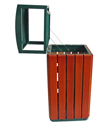 戶外鋼木單桶垃圾桶桶頭部分展示
