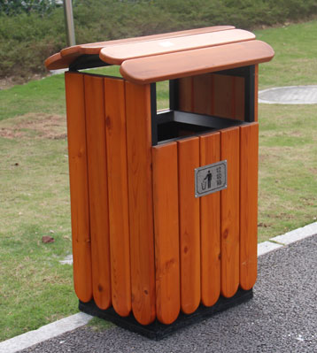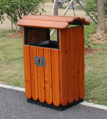 戶外鋼木單桶垃圾桶桶頂設計