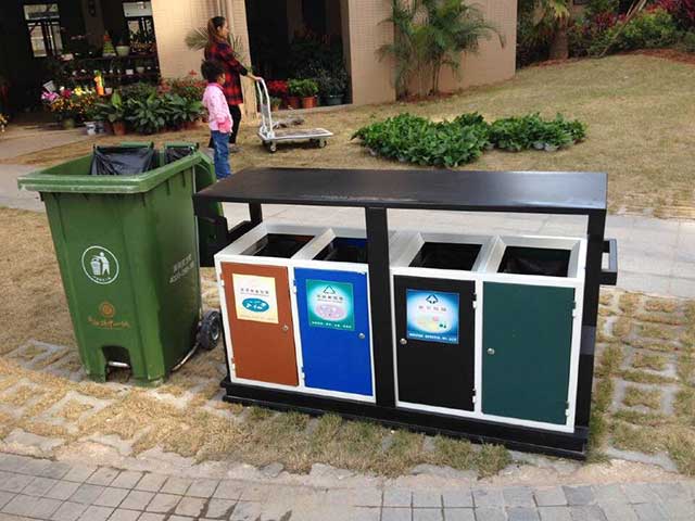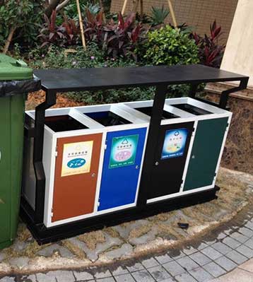 F139戶外鋼板四分類垃圾桶